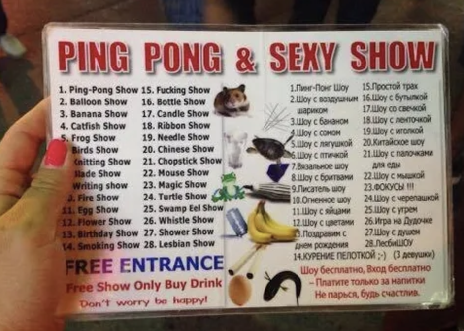 Nie siadaj w pierwszym rzędzie: Chyba że chcesz być „częścią show” – performerki często wciągają turystów do interakcji, co może być krępujące.